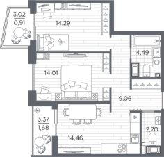 Продаётся 2-комнатная квартира в строящемся доме (Дом 3), срок сдачи: IV-кв. 2027, общей площадью 61.6 кв.м., на 11 этаже. Жилой квартал Respect - современная респектабельность.