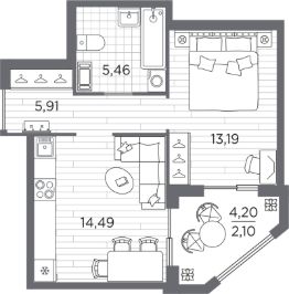 Продаётся 1-комнатная квартира в строящемся доме (Дом 3), срок сдачи: IV-кв. 2027, общей площадью 41.15 кв.м., на 12 этаже. Жилой квартал Respect - современная респектабельность.