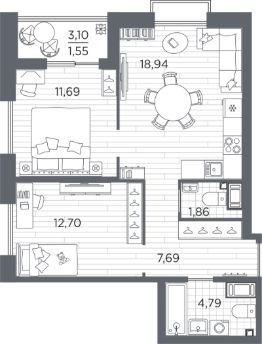 Продаётся 2-комнатная квартира в строящемся доме (Дом 3), срок сдачи: IV-кв. 2027, общей площадью 59.22 кв.м., на 12 этаже. Жилой квартал Respect - современная респектабельность.
