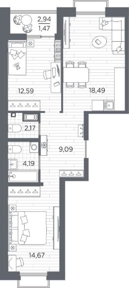 Продаётся 2-комнатная квартира в строящемся доме (Дом 3), срок сдачи: IV-кв. 2027, общей площадью 62.67 кв.м., на 8 этаже. Жилой квартал Respect - современная респектабельность.