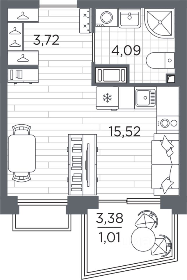 Продаётся студия в строящемся доме (Дом 3), срок сдачи: IV-кв. 2027, общей площадью 24.34 кв.м., на 3 этаже. Жилой квартал Respect - современная респектабельность.