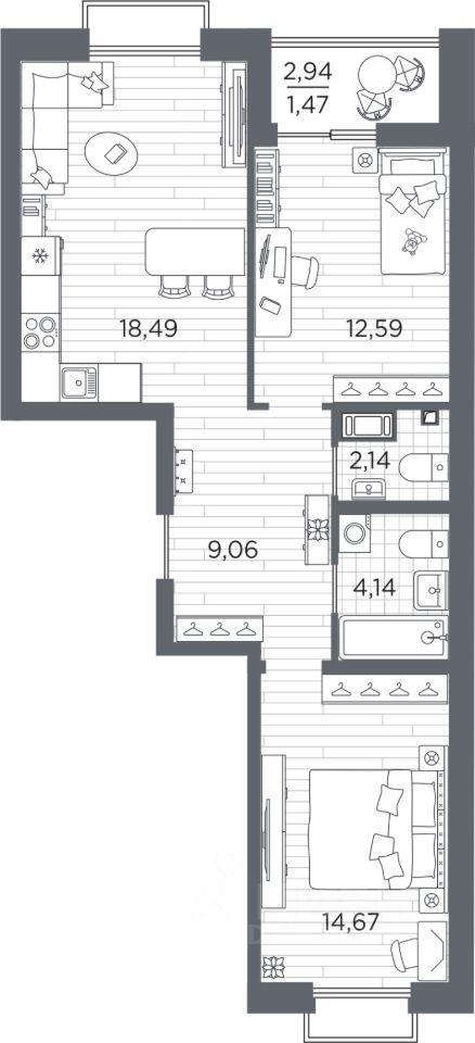 Продаётся 2-комнатная квартира в строящемся доме (Дом 3), срок сдачи: IV-кв. 2027, общей площадью 62.56 кв.м., на 8 этаже. Жилой квартал Respect - современная респектабельность.