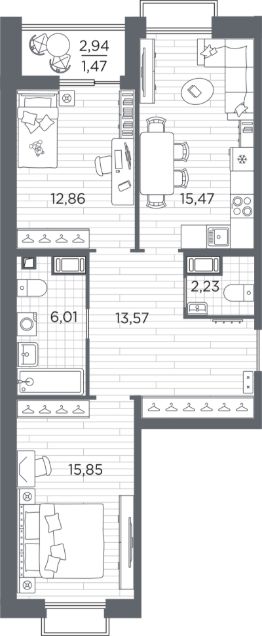 Продаётся 2-комнатная квартира в строящемся доме (Дом 3), срок сдачи: IV-кв. 2027, общей площадью 67.46 кв.м., на 3 этаже. Жилой квартал Respect - современная респектабельность.