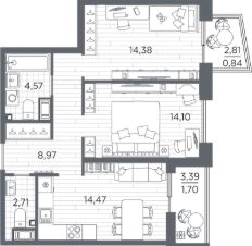 Продаётся 2-комнатная квартира в строящемся доме (Дом 3), срок сдачи: IV-кв. 2027, общей площадью 61.74 кв.м., на 11 этаже. Жилой квартал Respect - современная респектабельность.