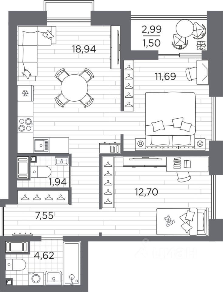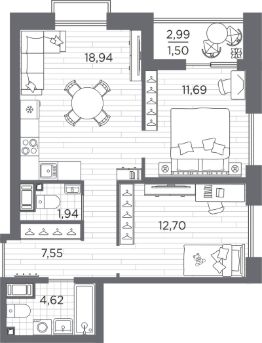 Продаётся 2-комнатная квартира в строящемся доме (Дом 3), срок сдачи: IV-кв. 2027, общей площадью 58.94 кв.м., на 12 этаже. Жилой квартал Respect - современная респектабельность.