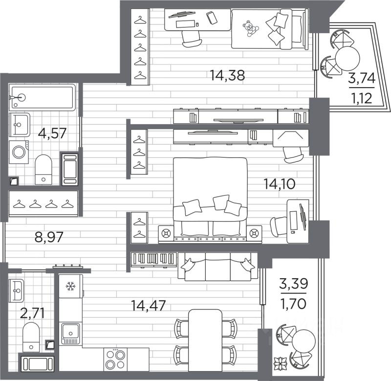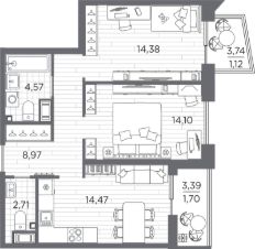 Продаётся 2-комнатная квартира в строящемся доме (Дом 3), срок сдачи: IV-кв. 2027, общей площадью 62.02 кв.м., на 12 этаже. Жилой квартал Respect - современная респектабельность.