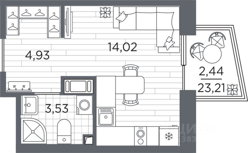 Продаётся студия в строящемся доме (Дом 3), срок сдачи: IV-кв. 2027, общей площадью 23.21 кв.м., на 3 этаже. Жилой квартал Respect - современная респектабельность.