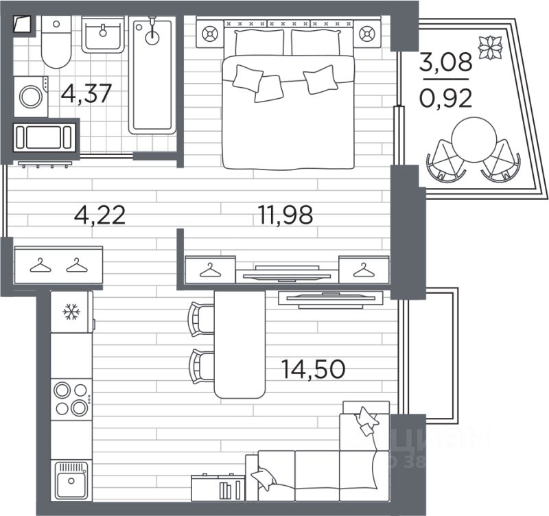 Продаётся 1-комнатная квартира в строящемся доме (Дом 3), срок сдачи: IV-кв. 2027, общей площадью 35.99 кв.м., на 3 этаже. Жилой квартал Respect - современная респектабельность.