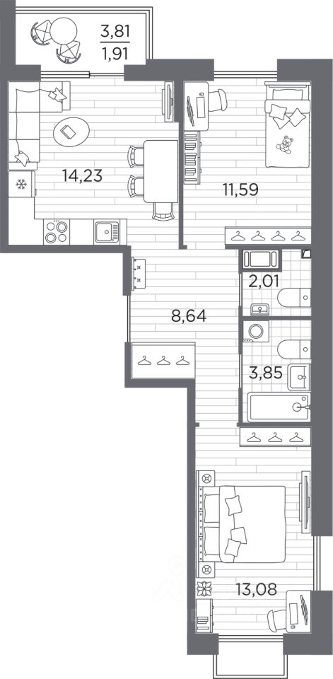 Продаётся 2-комнатная квартира в строящемся доме (Дом 3), срок сдачи: IV-кв. 2027, общей площадью 55.31 кв.м., на 2 этаже. Жилой квартал Respect - современная респектабельность.