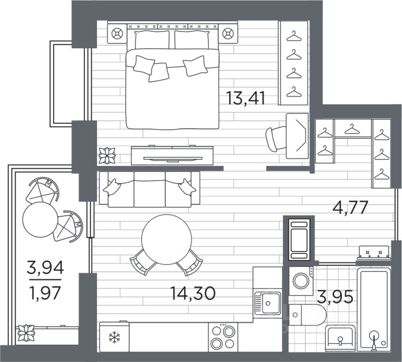 Продаётся 1-комнатная квартира в строящемся доме (Дом 3), срок сдачи: IV-кв. 2027, общей площадью 38.4 кв.м., на 12 этаже. Жилой квартал Respect - современная респектабельность.