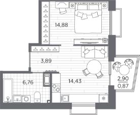 Продаётся 1-комнатная квартира в строящемся доме (Дом 3), срок сдачи: IV-кв. 2027, общей площадью 40.83 кв.м., на 8 этаже. Жилой квартал Respect - современная респектабельность.