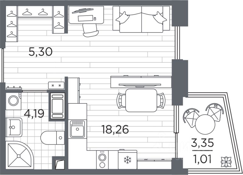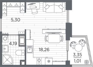 Продаётся студия в строящемся доме (Дом 3), срок сдачи: IV-кв. 2027, общей площадью 28.76 кв.м., на 3 этаже. Жилой квартал Respect - современная респектабельность.