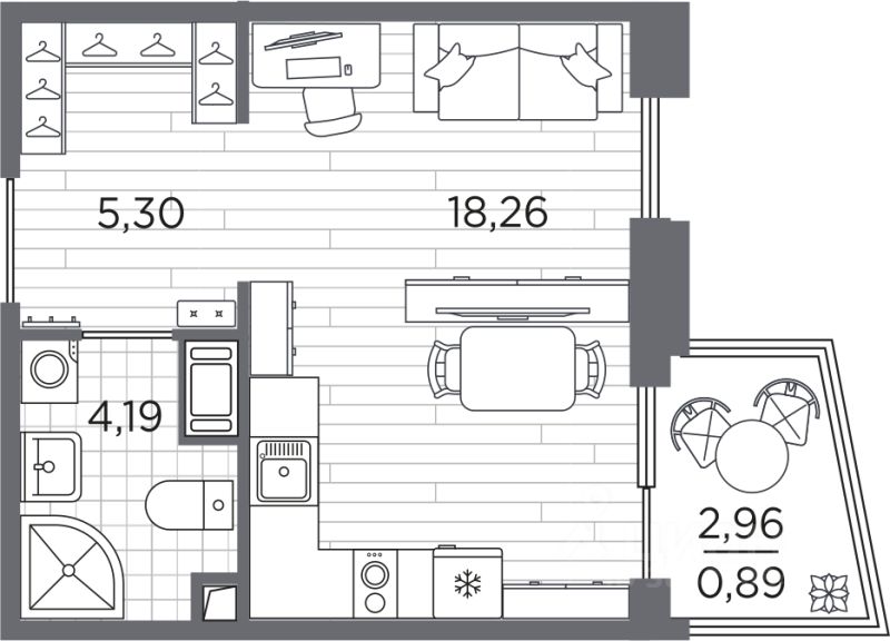 Продаётся студия в строящемся доме (Дом 3), срок сдачи: IV-кв. 2027, общей площадью 28.64 кв.м., на 8 этаже. Жилой квартал Respect - современная респектабельность.
