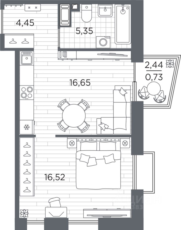 Продаётся 1-комнатная квартира в строящемся доме (Дом 3), срок сдачи: IV-кв. 2027, общей площадью 43.7 кв.м., на 3 этаже. Жилой квартал Respect - современная респектабельность.