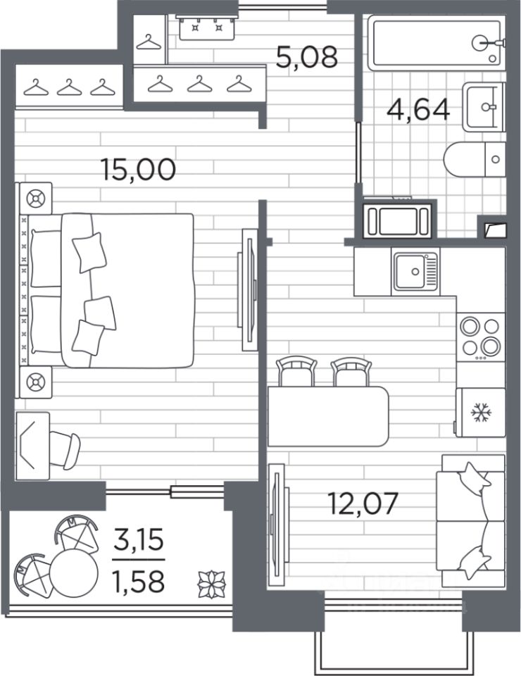 Продаётся 1-комнатная квартира в строящемся доме (Дом 3), срок сдачи: IV-кв. 2027, общей площадью 38.37 кв.м., на 4 этаже. Жилой квартал Respect - современная респектабельность.