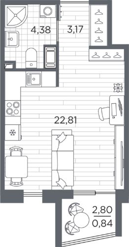 Продаётся студия в строящемся доме (Дом 3), срок сдачи: IV-кв. 2027, общей площадью 31.2 кв.м., на 7 этаже. Жилой квартал Respect - современная респектабельность.