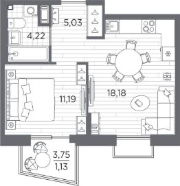 Продаётся 1-комнатная квартира в строящемся доме (Дом 3), срок сдачи: IV-кв. 2027, общей площадью 39.75 кв.м., на 2 этаже. Жилой квартал Respect - современная респектабельность.