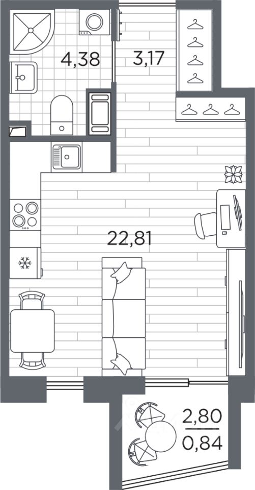 Продаётся студия в строящемся доме (Дом 3), срок сдачи: IV-кв. 2027, общей площадью 31.2 кв.м., на 12 этаже. Жилой квартал Respect - современная респектабельность.