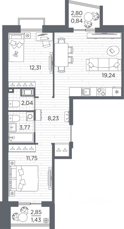 Продаётся 2-комнатная квартира в строящемся доме (Дом 3), срок сдачи: IV-кв. 2027, общей площадью 59.61 кв.м., на 7 этаже. Жилой квартал Respect - современная респектабельность.