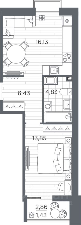 Продаётся 1-комнатная квартира в строящемся доме (Дом 3), срок сдачи: IV-кв. 2027, общей площадью 42.67 кв.м., на 3 этаже. Жилой квартал Respect - современная респектабельность.