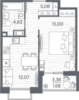 Продаётся 1-комнатная квартира в строящемся доме (Дом 3), срок сдачи: IV-кв. 2027, общей площадью 38.46 кв.м., на 4 этаже. Жилой квартал Respect - современная респектабельность.