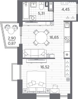 Продаётся 1-комнатная квартира в строящемся доме (Дом 3), срок сдачи: IV-кв. 2027, общей площадью 43.8 кв.м., на 4 этаже. Жилой квартал Respect - современная респектабельность.