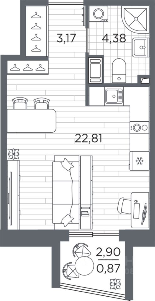 Продаётся студия в строящемся доме (Дом 3), срок сдачи: IV-кв. 2027, общей площадью 31.23 кв.м., на 4 этаже. Жилой квартал Respect - современная респектабельность.