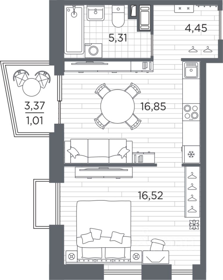 Продаётся 1-комнатная квартира в строящемся доме (Дом 3), срок сдачи: IV-кв. 2027, общей площадью 44.14 кв.м., на 11 этаже. Жилой квартал Respect - современная респектабельность.