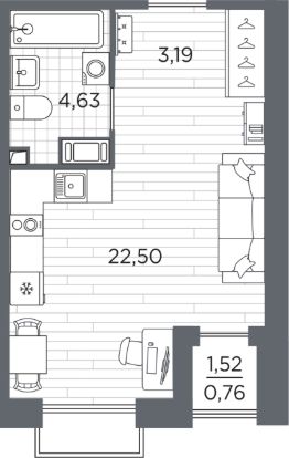 Продаётся студия в строящемся доме (Дом 3), срок сдачи: IV-кв. 2027, общей площадью 31.08 кв.м., на 12 этаже. Жилой квартал Respect - современная респектабельность.