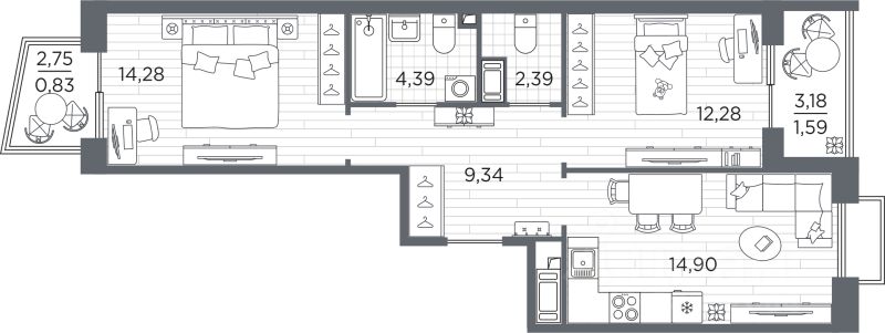 Продаётся 2-комнатная квартира в строящемся доме (Дом 3), срок сдачи: IV-кв. 2027, общей площадью 60 кв.м., на 11 этаже. Жилой квартал Respect - современная респектабельность.
