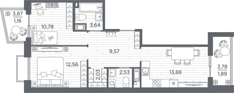 Продаётся 2-комнатная квартира в строящемся доме (Дом 3), срок сдачи: IV-кв. 2027, общей площадью 58.04 кв.м., на 11 этаже. Жилой квартал Respect - современная респектабельность.