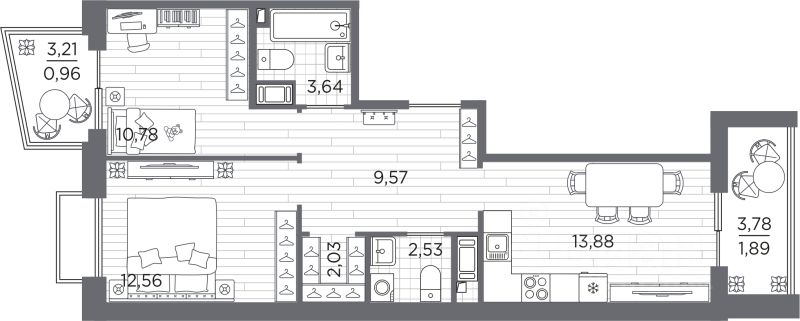 Продаётся 2-комнатная квартира в строящемся доме (Дом 3), срок сдачи: IV-кв. 2027, общей площадью 57.84 кв.м., на 12 этаже. Жилой квартал Respect - современная респектабельность.