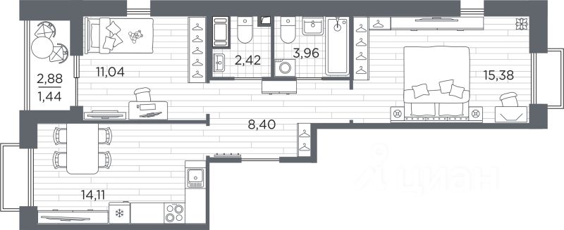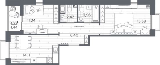 Продаётся 2-комнатная квартира в строящемся доме (Дом 3), срок сдачи: IV-кв. 2027, общей площадью 56.75 кв.м., на 12 этаже. Жилой квартал Respect - современная респектабельность.