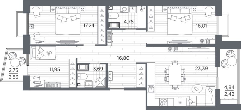 Продаётся 3-комнатная квартира в строящемся доме (Дом 3), срок сдачи: IV-кв. 2027, общей площадью 97.09 кв.м., на 3 этаже. Жилой квартал Respect - современная респектабельность.