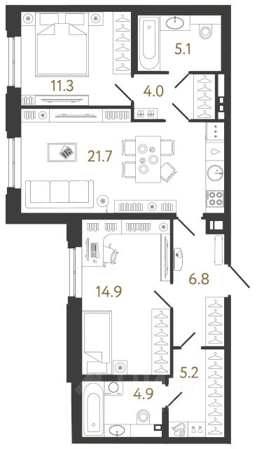 Средняя площадь квартир в проекте - 85,3 м. В коллекционной квартирографии выделяются исключительные лоты: 9 квартир с люкарнами и террасами, 4 из которых - двухуровневые, 2 из них - с двусветной гостиной и потолками до 6,4 м. В башнях-доминантах, которые проглядываются с Каменноостровского проспекта, ещё две уникальные квартиры: здесь потолки в кухне-гостиной достигают высоты 3,75 м. Все квартиры продаются без отделки. Окна и балконы - алюминиевые с накладками из натурального дерева внутри квартиры.
