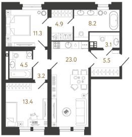 Продаётся 2-комнатная квартира в строящемся доме (Секция 2), срок сдачи: IV-кв. 2028, общей площадью 77.1 кв.м., на 3 этаже. "Коллекционер" - клубный дом от RBI на 69 коллекционных квартир с террасами и люкарнами в Петроградском районе Петербурга на улице Чапыгина. Здесь роскошь пустоты и камерного уединения, воплотившаяся в модернистской архитектуре с элементами ар-деко, рождает новые вечные смыслы. Окружение располагает: среди роскошных доходных домов XIX века и уютных садов Петроградской стороны, которые хранят память былых столетий, пробуждается особое внутреннее стремление создавать новое, неподвластное времени.