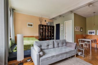 На данный момент квартира разделена на 2 (студию 36.3 м2 и 2 к квартиру 55.5 м2). Очень легко вернуть в первоначальный вид, и тогда эта квартира идеально подойдет для семьи с детьми. Также можно разделить квартиру на 2 и узаконить это (есть проект, не доведен до конца много лет назад).