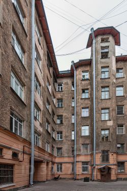 Окна выходят на 3 стороны: в зеленый двор в сторону Медиков и Попова, в сторону Гимназии 70 и во вдор.