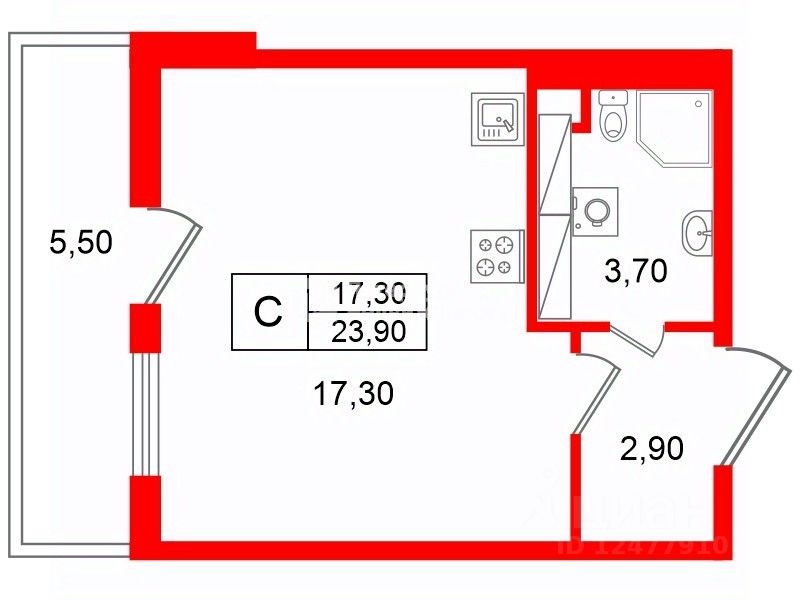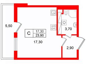Общая площадь квартиры составляет 23,9 кв.м. + балкон 5,5 кв.м. Широкая студия со встроенной кухней, в прихожей встроенный большой шкаф-купе. Просторный утепленный балкон, на котором заменено остекление. Квартира расположена на 8-ом этаже 12-ти этажного дома. Удобное расположение на площадке - в конце коридора. Окна на восточную сторону.