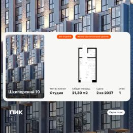 Продаётся квартира-студия площадью 21,3 кв.м на 1 этаже 12 этажного дома (Корпус 2, Секция 4) проекта ПИК Шкиперский 19. Светлый просторный подъезд на уровне земли, функциональная планировка, большие окна, без отделки.