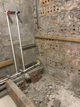 В санузле сделана новая разводка под воду, подготовлено место под душевую кабину, унитаз, стиральную машину. Унитаз новый, лежит в коробке нераспакованным.