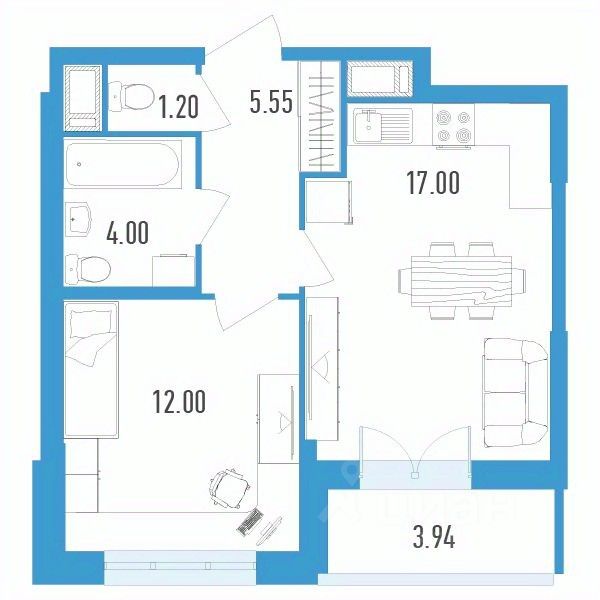 Продаётся 1-комнатная квартира в сданном доме (Головнина, 3к1), срок сдачи: II-кв. 2023, общей площадью 42.3 кв.м., на 7 этаже.