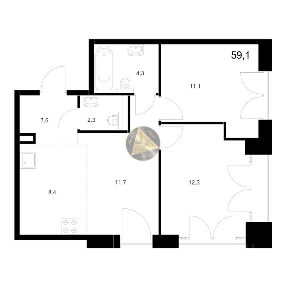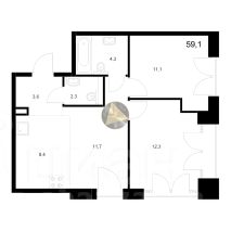 - Общая площадь квартиры 59.1 м2
