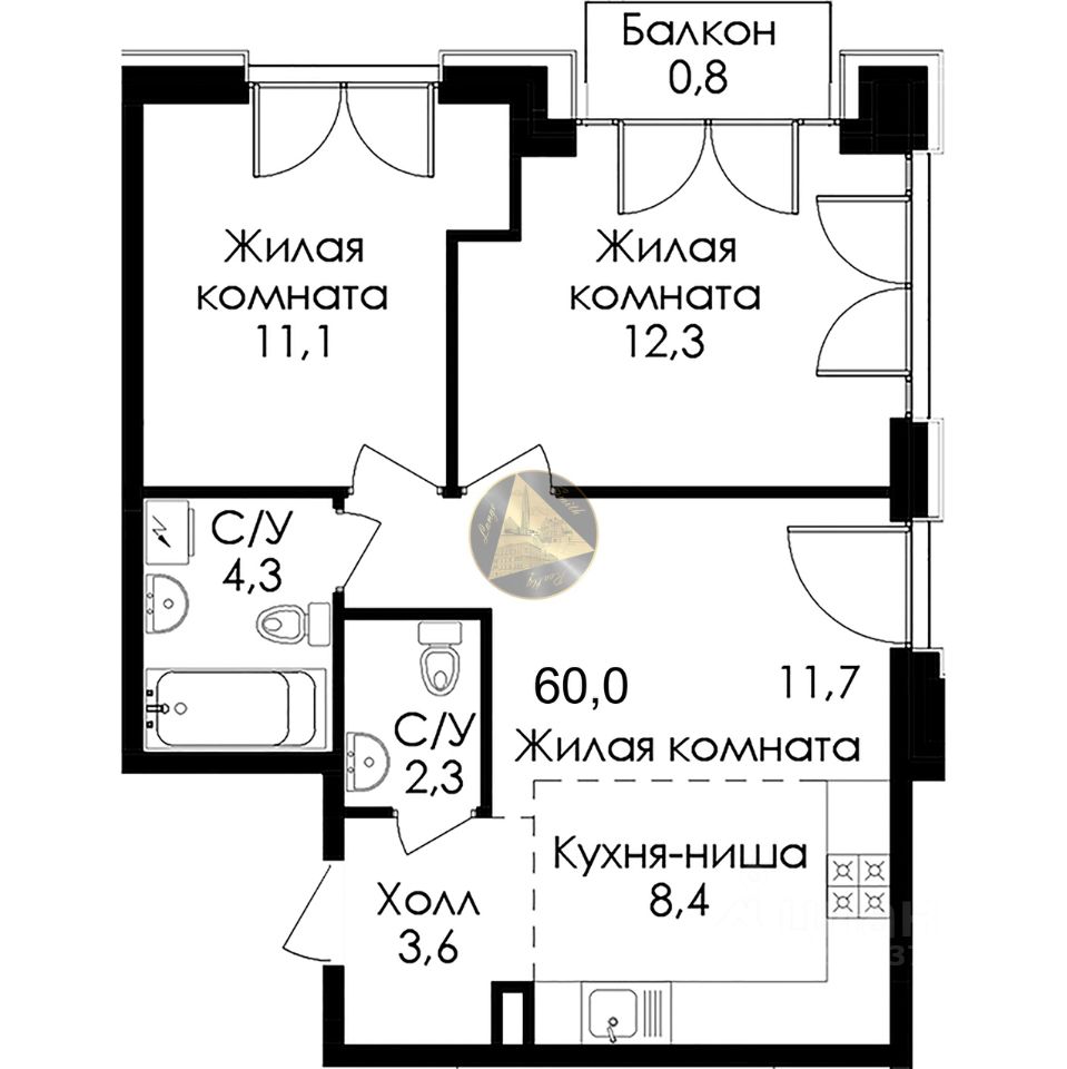 - Общая площадь квартиры 60.0 м2