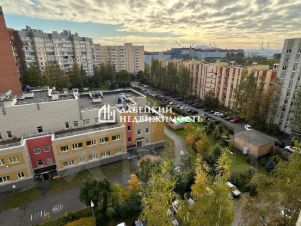 - С комнаты есть выход на ЗАСТЕКЛЕННЫЙ балкон (2.2 м²) с видом на Лахту, залив и парк 300-летия Петербурга