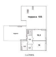S = квартира 113 м² + терраса 105 м² + лоджия 4,2 м² = 222 м²