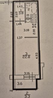 В квартире все зоны (прихожая, кухня, комната) разделены. Полноценная ванная.