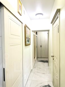 Выполнен ремонт из качественных строительных материалов. Сделан тёплый пол в прихожей, санузле и на кухне. На полу индийский керамогранит и ламинат, стены и потолок выровнены и окрашены.
