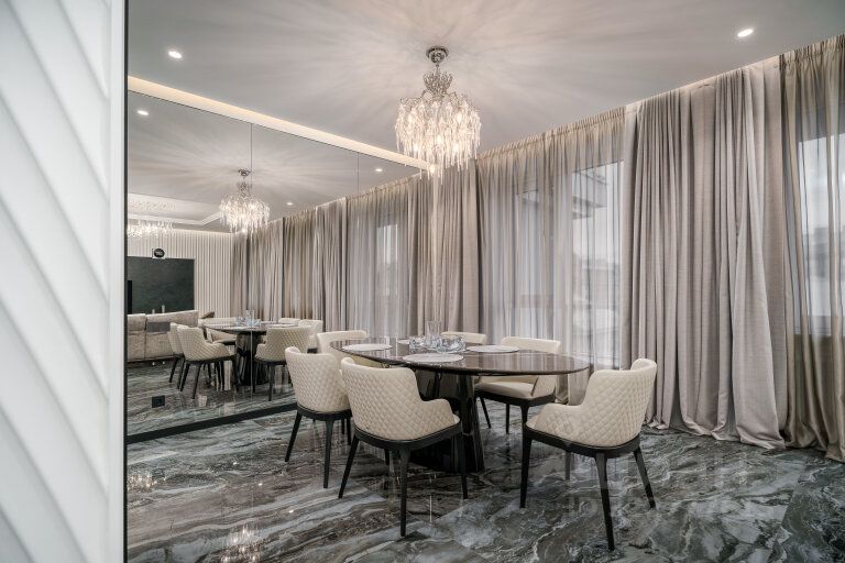 Квартира расположена на пятом этаже достойного и камерного дома "Каменноостровская Коллекция". Выполнен дизайнерский ремонт по проекту студии MK Interio с использованием высококачественных материалов и мебели премиальных брендов. Сантехника: Antonio Lupi, Zucchetti, Cielo, Toto. Мебель: Poliform, Minotti, Edra, Visionnaire, Cattelan Italia, Rimadesio. Свет: Brand van Egmond, Masiero, Terzani. Полы — из натурального паркета и камня; высота потолков — 3 метра.