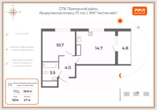 Друзья, рады Вам представить светлую и просторную квартиру в новом доме. Да, просторную при метраже в 33 м2! Оптимальная, гармоничная угловая планировка и балкон дают это ощущение простора и воздуха. В данный момент балкон используется как полноценное рабочее место. Все помещения правильной, но нескучной формы - есть, что обыграть, есть, где разместить пространства для хранения.